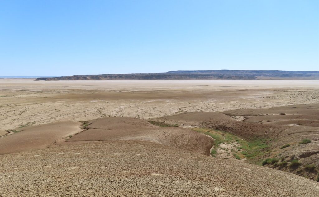 The name of the sunken basin is Ashyktaypak and it lies between the Caspian and Aral lakes at the foot of the northern Ustyurt Plateau, pretty far from civilization in every direction. The elevation of the salt flat lying on its bottom is -62 meters. Topographically and also genetically can be considered part of the bigger Caspian Depression, even if separated from it by a low ridge.