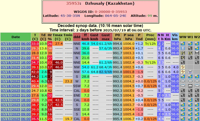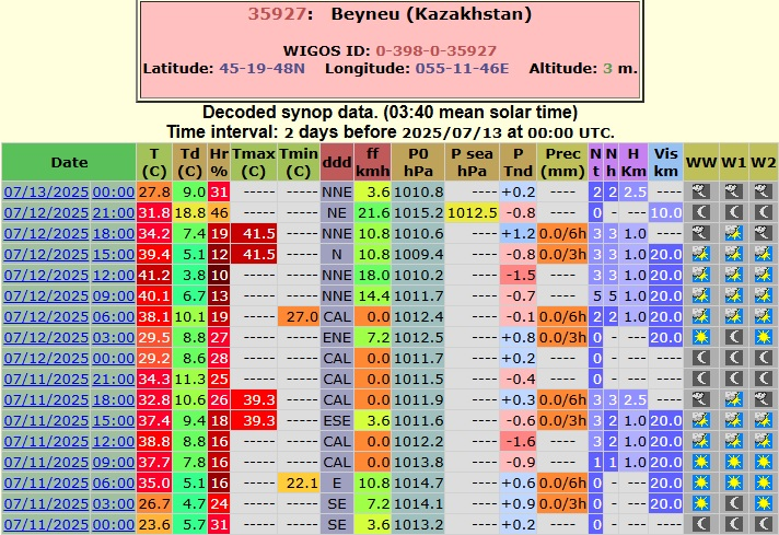 Beyneu maga is csak kevéssel a tenger szintje felett helyezkedik el az előbb említett, a Kaszpi és Aral tavak közti lapos háton. Az alacsony szint és a mérséklő tengerektől való hatalmas távolság együttes következményeként – a relatív magas szélességi fokot meghazudtolva – nyáron meglepően forró a vidék éghajlata. Konkrétan, itt már kicsivel a 45-ös északi szélesség fölött járunk, avagy már közelebb az Északi-sarkhoz, mint az Egyenlítőhöz.